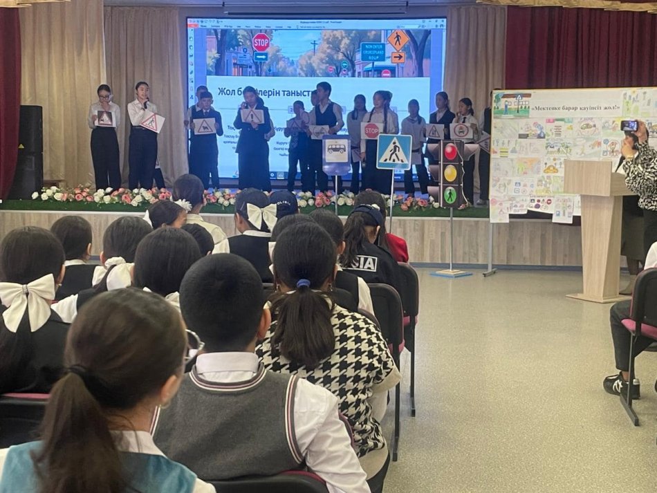 Іс-шара мақсаты: жолда жүру ережесін сақтауға, оқушыларға жол белгілерін неше түрі бар, оны білу не үшін қажет, бағдаршамның, жол белгілерінің атқаратын қызметі қандай екенін үйрету.барлығымызға ортақ қойылған тәртіпті бұзбауға тәрбиелеу.