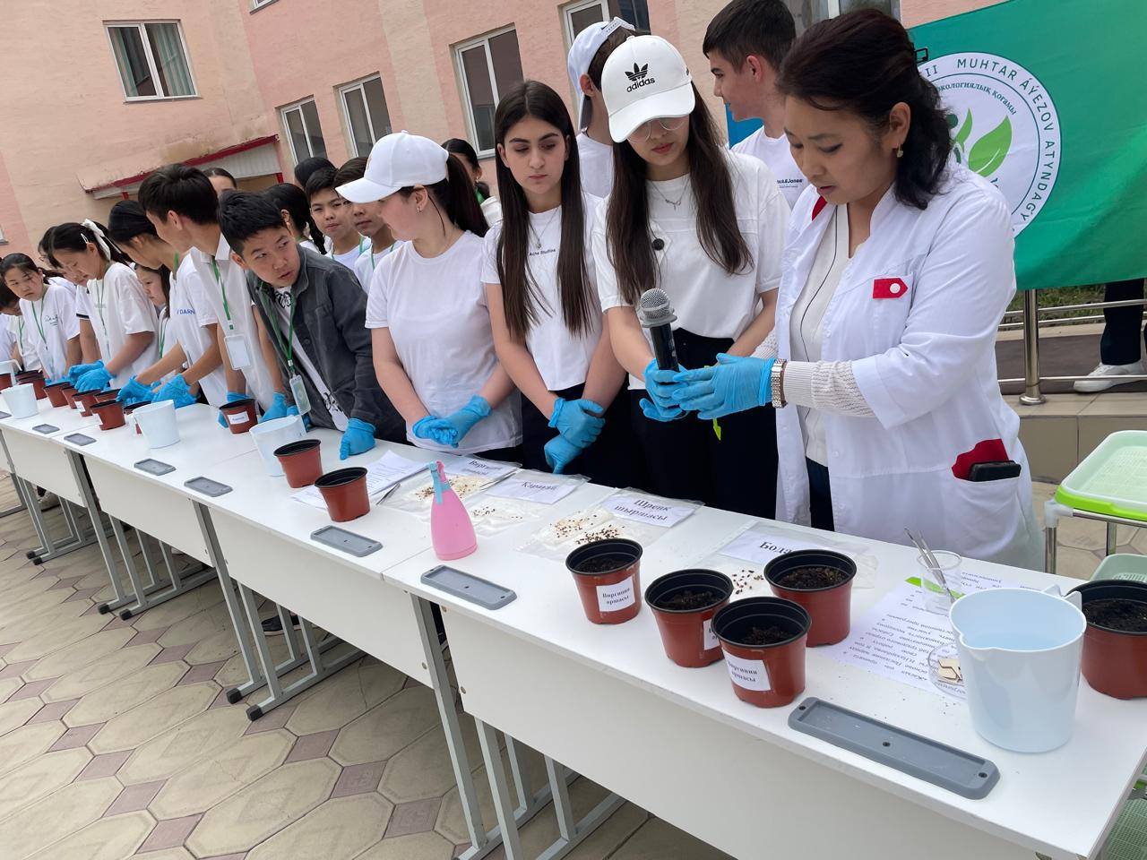 "Жасыл әлем"-бұл жай ғана ағаш отырғызу емес, бұл табиғатпен үйлесімді өмір сүру, ресурс үнемдеу, экологиялық мәдениетті қалыптастыру. Әрбір адам күнделікті тұрмыста қарапайым экологиялық әрекеттерді жасап, үлкен өзгерістерге жол аша алады. Сол себепті бүгінгі акция өткізілді. Акция барысында эко клуб оқушылары ыдысқа тұқым отырғызды. Ол тұқымның маңыздылығын, қандай өсімдік екенін, тарихын қысқаша мәлімдемелер жасады.