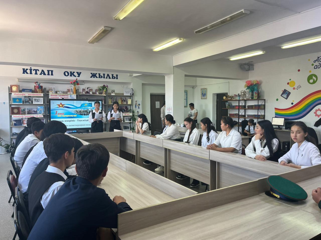 2025 жылдың 5 мамыр күні, Отан қорғаушылар күніне орай «Ұлттық әскеріміз – Тәуелсіздіктің тірегі» тақырыбында 9 сыныптар арасында дөңгелек үстел ұйымдастырылды. Дөңгелек үстелдің мақсаты – оқушыларға Қазақстан Республикасының Қарулы Күштері туралы мағлұмат беру, отансүйгіштік пен патриоттық тәрбие беру, әскери қызметке құрметпен қарауға баулу болды.Іс-шара барысында оқушылар мен арнайы шақырылған қонақ арасында Отан, ерлік, батырлық және патриотизм тақырыптарында ашық пікір алмасу, сұхбаттар мен тағылымды ой бөлісулер өтті. Сонымен қатар, арнайы қонағымыз майор Сапарбаев Б. өз тәжірибелерімен бөлісіп, жастарға құнды кеңестер берді.